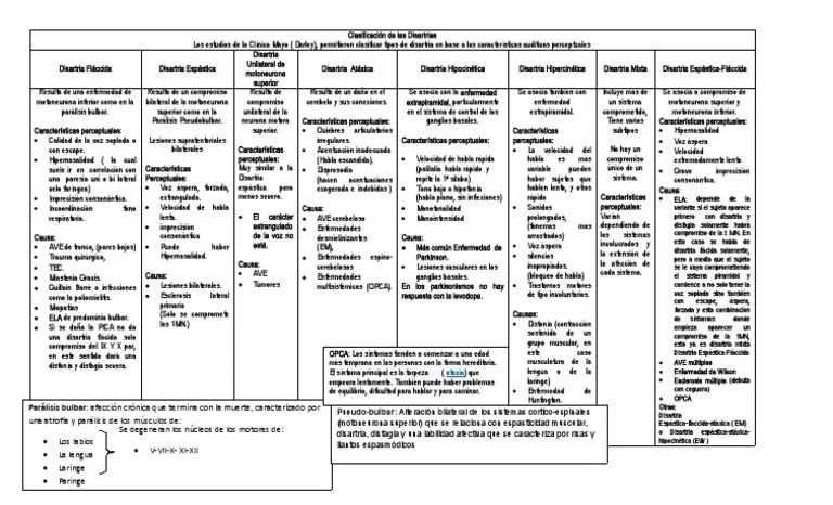 Clasificación de las disartrias (según darley, aronson, brown y. . Outras características são consoantes soando imprecisas e voz anasalada, além de perda de …